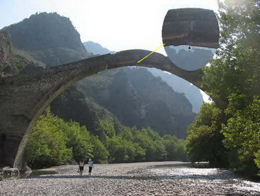 Jembatan ini seelama berabad-abad dalam membentang di sungai Aoos Yunanu, yang penuh di musim dingin. Jika Anda melihat dengan cermat ke kanan di bawah bagian atas jembatan, Anda dapat melihat sebuah lonceng kecil. Penduduk desa mengatakan bahwa ketika ada cukup angin sehingga bel itu berbunyi,saat itu terlalu berbahaya untuk menyeberangi jembatan